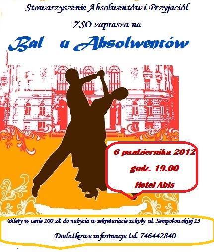 Serdecznie zapraszamy na "Bal u Absolwentów", który odbędzie się 6 października w hotelu Abis o godz. 19.00.